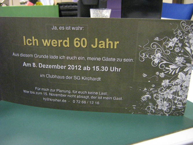 Fotos meiner Feier zum 60. Geburstag im Clubhaus der SG Kirchardt am 8. Dezember 2012